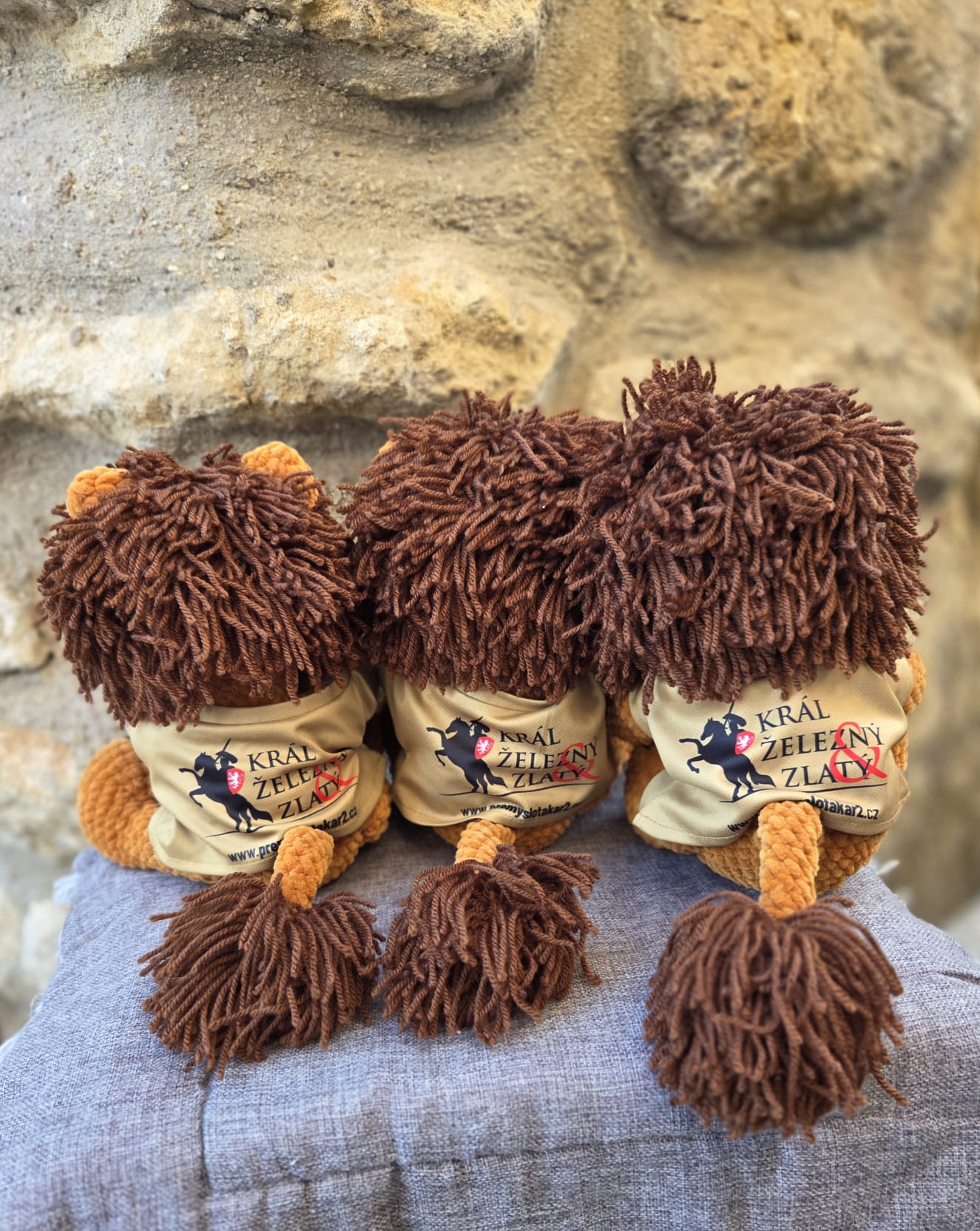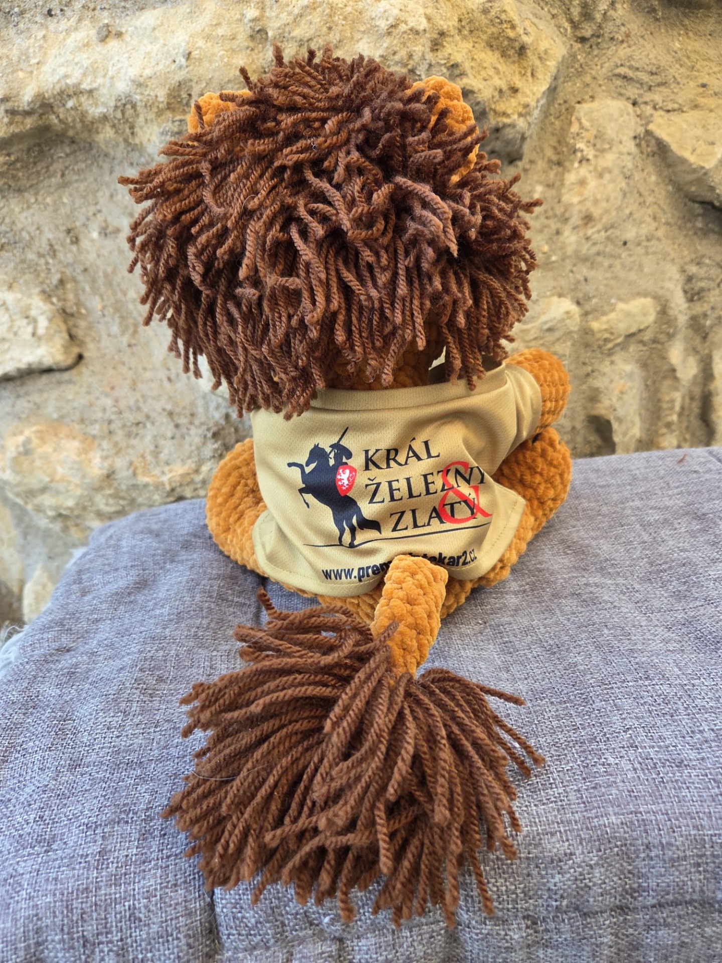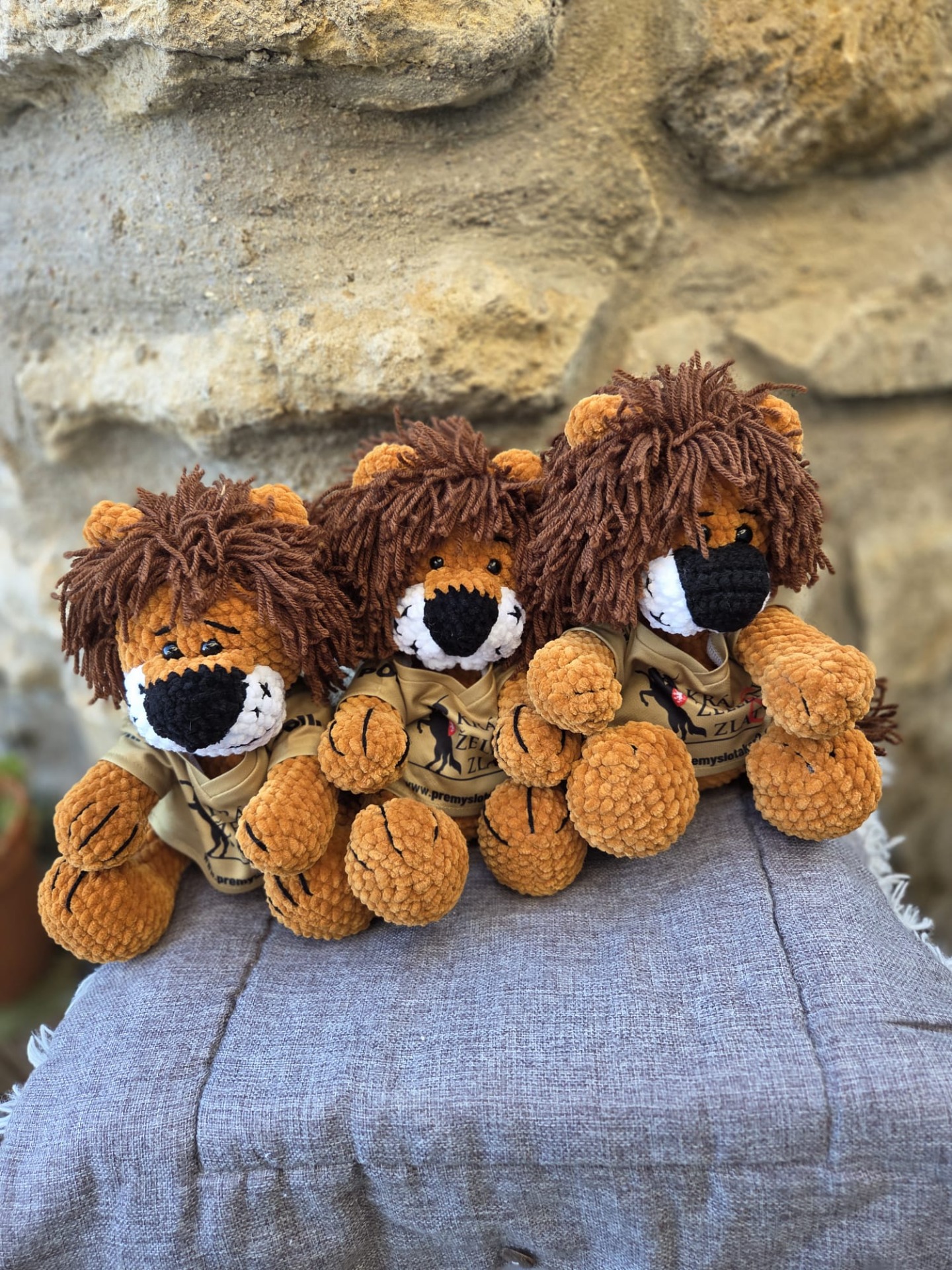 Ručně vyráběný, háčkovaný český lev, velikost 35 cm. Tričko projektu POII. Lev je skladem.